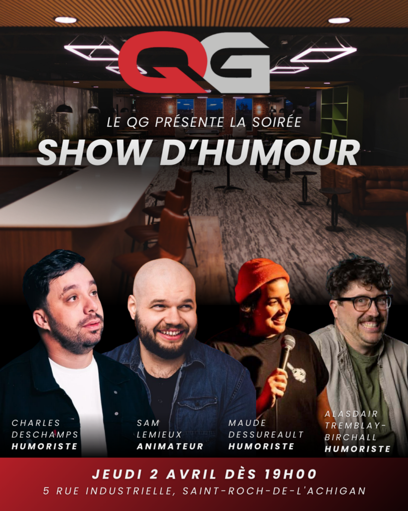 Nous vous invitons à une super soirée d’humour au Salon événementiel du Quartier Général de Lanaudière où le stand-up devient le prétexte parfait pour se rassembler, décrocher du quotidien et passer un excellent moment dans une ambiance décontractée.